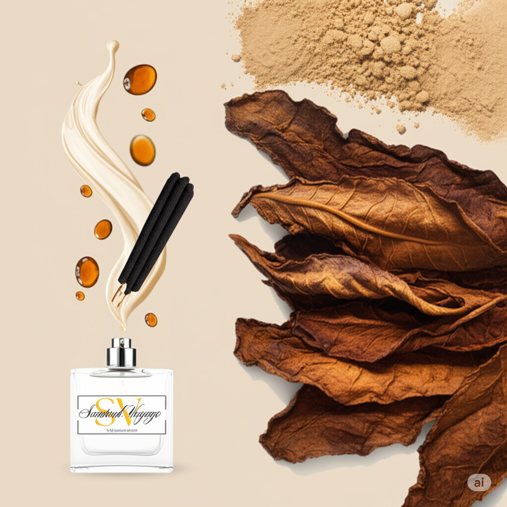 Description: A warm, sensual blend where rich tobacco leaf meets golden amber, wrapped in soft cashmere cream and the exotic, incense-like mystique of nag champa. Earthy, smooth, and deeply addictive.